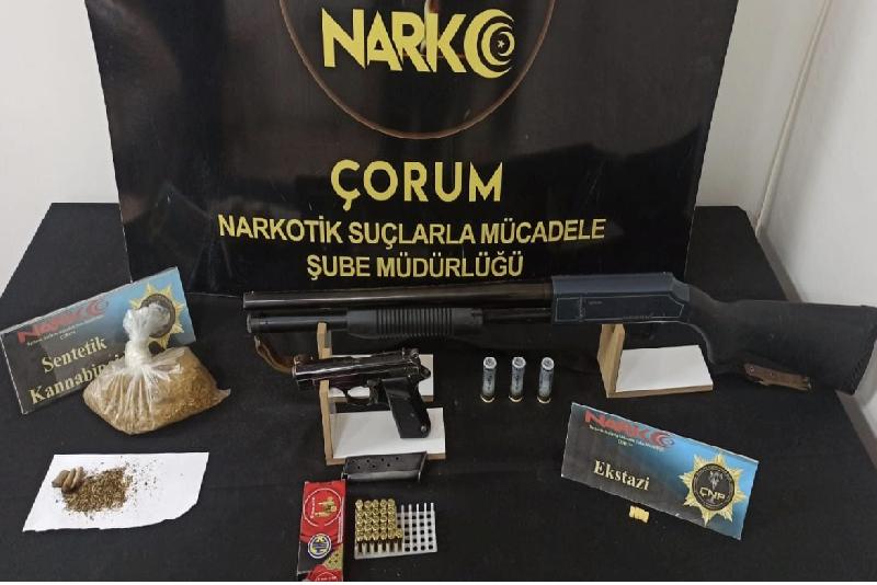 Zanlıların konut ve araçlarında yapılan aramada 1 kilo 263 gram sentetik uyuşturucu, 36,1 gram esrar, 4,56 gram eroin, 2,26 gram kokain, 19,80 gram uyuşturucu ham unsuru, 64 uyuşturucu hap, 163 sentetik ecza, 5 tabanca, 4 tüfek, mermi ve hatadan elde edildiği bedellendirilen 12 bin155 lira ele geçirildi.
