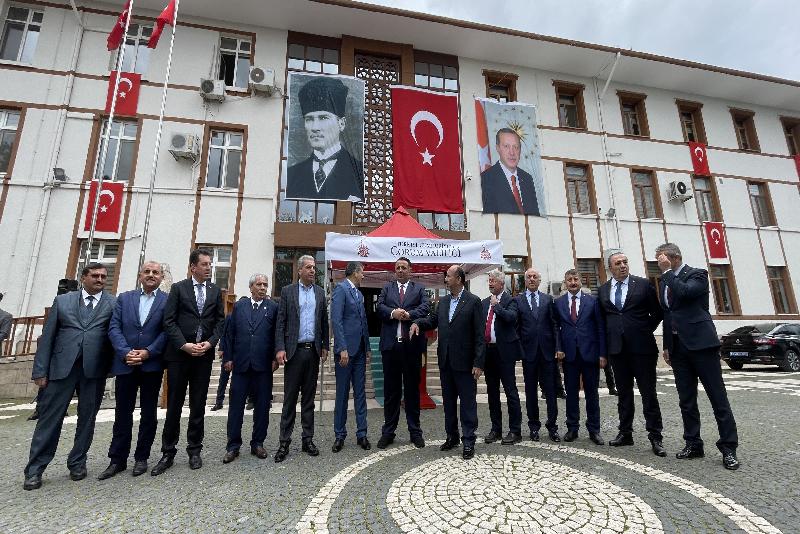 Çorum Valisi Mustafa Çiftçi ve Belediye Başkanı Halil İbrahim Aşgın, Valilik bahçesindeki törende katılımcıların bayramını kutladı.