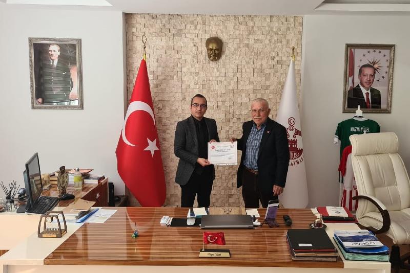 Yücel, konuşmanın akabinde köy ve mahalle muhtarlarına teşekkür dokümanlarını takdim etti.