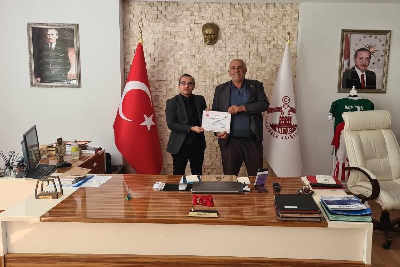 Boğazkale Kaymakamı Nazmi Yücel, zelzele felaketi sebebiyle Boğazkale ilçesinde başlatılan yardım seferberliğine katkılarından ötürü köy ve mahalle muhtarlarına teşekkür dokümanı verdi.