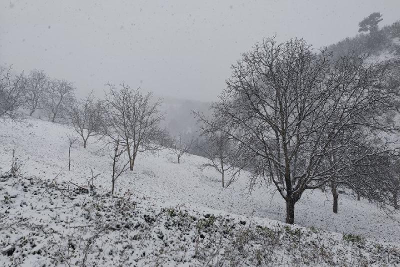 Öğle saatlerinde başlayan yağışla birlikte ilçe merkezi beyaza büründü. Ağır yağış nedeniyle Oğuzlar'ın ceviz bahçeleri de kar altında kaldı.