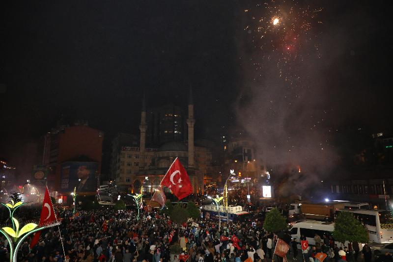 – Trabzon, Rize, Bayburt, Ordu, Giresun, Gümüşhane ve Artvin’de vatandaşlar, Cumhurbaşkanı Erdoğan’ın seçim başarısı dolayısıyla parti il başkanlıkları önünde ve meydanlarda toplandı
