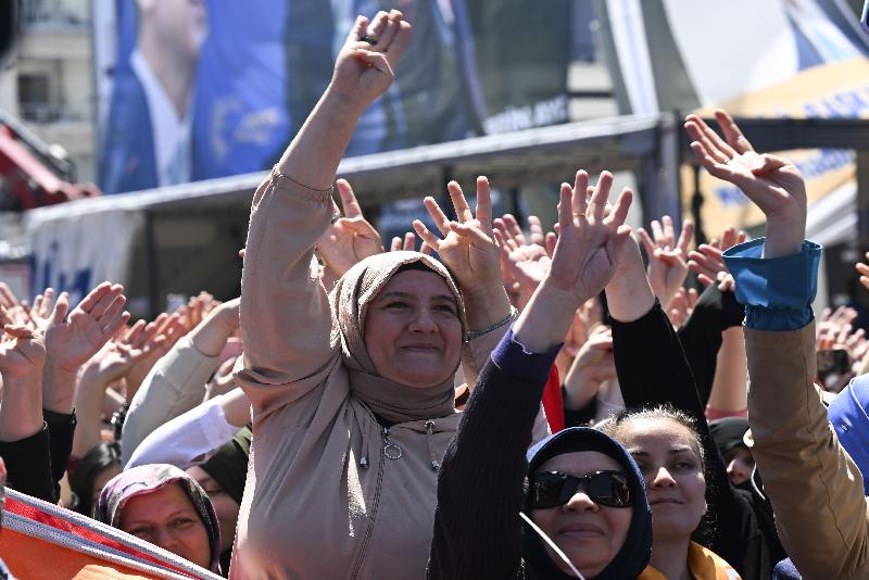 “Sadece sizin oy kullanmanız yeterli değil. Bununla beraber en az bir komşunuzu, eşinizi, dostunuzu sandığa götürerek bize, Cumhur İttifakı’na oy vermesini sağlamanız lazım. Aksi takdirde ne olur biliyor musunuz? Bizim Irak ve Suriye'de tepelerine bindiğimiz, nefes alamaz hale getirdiğimiz teröristler var ya işte onlar gelir yeniden bu ülkenin başına musallat olur. Sadece ülkemize değil milletimizin inancına, değerlerine saldıran FETÖ'cü hainler var ya işte onlar gelir, yeniden çocuklarınızı ellerinizden alır. Zorlu bir mücadelenin ardından ayaklarını ülkemizden kestiğimiz emperyalistler var ya işte onlar gelir, bizi yeniden kendilerine bağımlı kılar. Bunu nasıl mı yaparlar? Karadeniz'de bulduğumuz gazın vanasını kapatırlar, Gabar'da bulduğumuz petrolün çıktığı kuyuların üzerine geçmişte olduğu gibi beton dökerler. Sınırlarımızın ötesinden başlattığımız güvenlik bariyerlerimizi yıkıp şehirlerimizi yeniden kana ve ateşe boğarlar.”