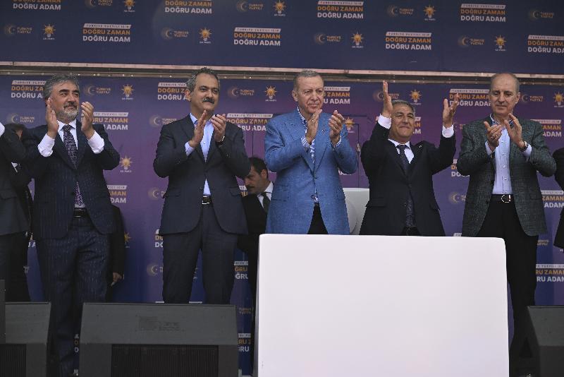 Videonun ardından meydandakilere seslenen Erdoğan, “Evet durumu görüyorsunuz değil mi? Ama bunca eziyete hiç gerek yok. Bay bay Kemal'e oy vermek, hangi partiye gönül vermiş olursa olsun vacip kılınmış bir görev değil. Gelen bu seçimde tercihimizi her beraber Türkiye Yüzyılı'ndan yana kullanalım.” diye konuştu.