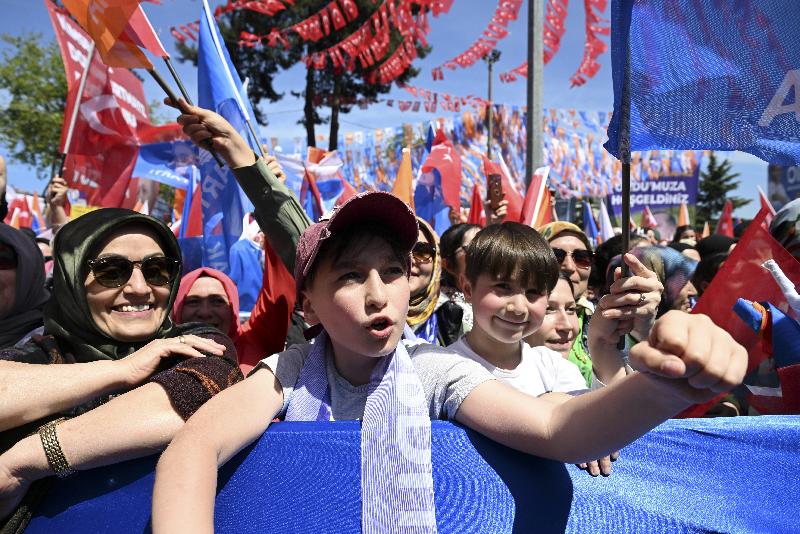 Miting alanına, “Boztepe'nin başında kara koyun yayılır. Bay bay Kemal'e giden oy HDP'ye sayılır”, “Havada bulut yok bu ne dumandır. Bay bay Kemal'in vaadi 2 kilo soğandır”, “Kimselere dokundurtmayız Reis'in kılına, seninle gideceğiz Türkiye Yüzyılı'na”, “Bahçeye gel bahçeye kuru fındık bulursun. Kandil'e yoldaş olan Ordu'dan uzak dursun”, “Kurşun döktürme Meral gelmezsin nazara, uykuların kaçacak 14 Mayıs Pazar'a. Fazla tüketme papatya çayını, masa dağılınca sen de alacaksın payını” ve “Dünya iyi bilir sizin duruşunuzu, kutlayacağız bir daha ülkenin kurtuluşunu” pankartları asıldı.