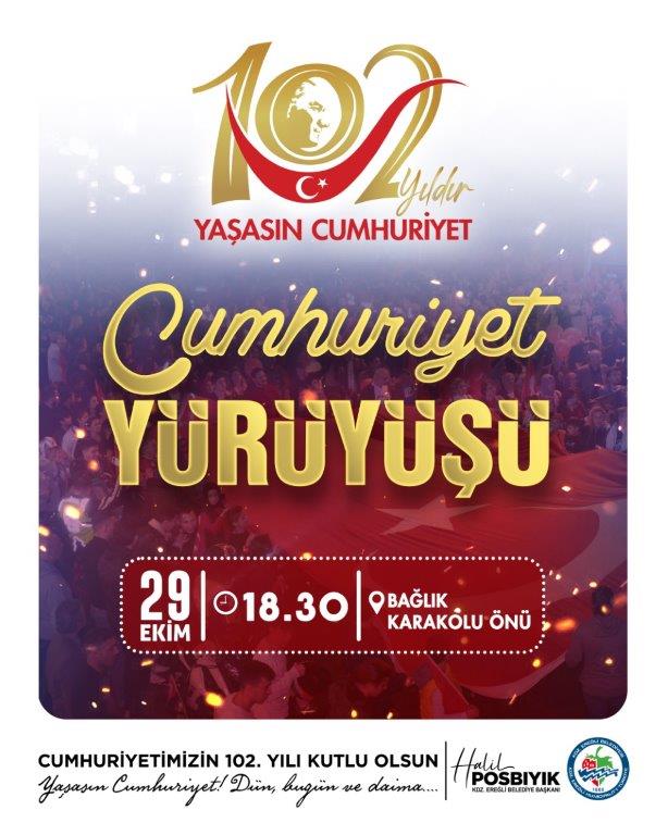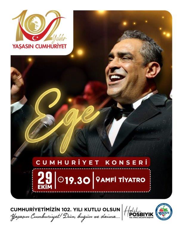 29 Ekim Çarşamba akşamı ise tüm halkın katılımına açık olarak düzenlenecek Cumhuriyet yürüyüşü, her yıl olduğu gibi saat 18.30’da Bağlık Karakolu önünden başlayacak. Cumhuriyet yürüyüşünün ardından saat 19.30’ da Amfi Tiyatro’da sevilen sanatçı Ege’nin vereceği konserle Cumhuriyet coşkusu doruğa ulaşacak.