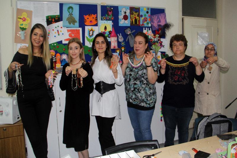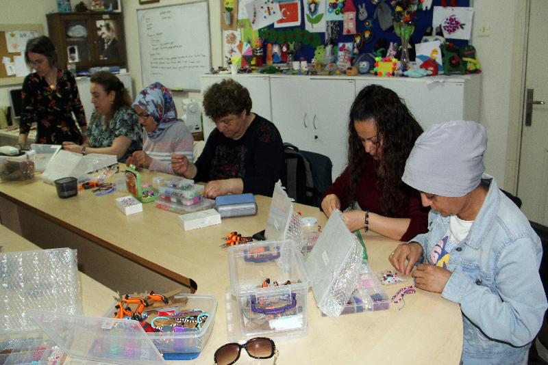 SİNOP – Aile ve Sosyal Hizmetler Bakanlığınca devlet-millet kaynaşmasını sağlamak amacıyla hayata geçirilen Aile Destek Merkezleri (ADEM) Projesi kapsamında Sinop'ta açılan takı tasarım kursuna katılan kadınlar, ürettikleri ürünleri satarak aile bütçelerine katkı sunmaya hazırlanıyor.