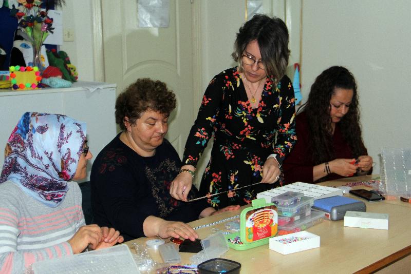 – Aile ve Sosyal Hizmetler Bakanlığınca devlet-millet kaynaşmasını sağlamak amacıyla hayata geçirilen ADEM projesi kapsamında açılan takı tasarım kursuna katılan kadınlar, ürettikleri ürünleri satarak aile bütçelerine katkı sunmaya hazırlanıyor