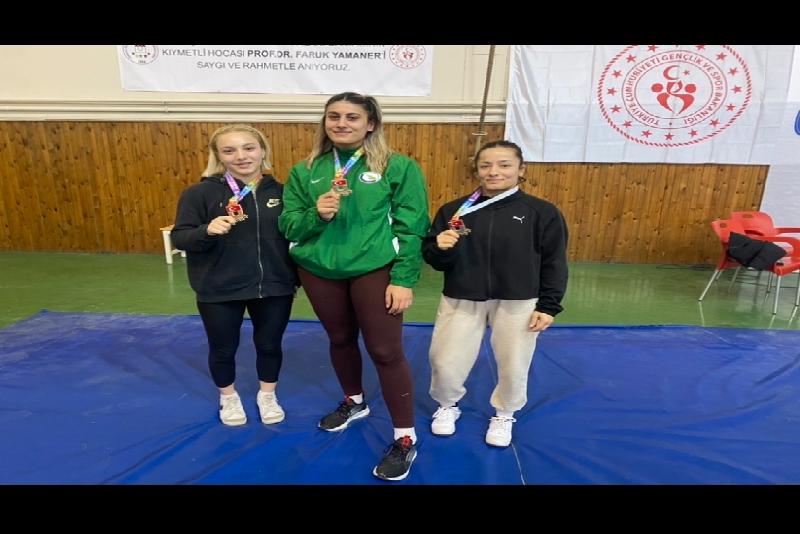 DÜZCE – 67aydinhaber – Düzce Üniversitesi (DÜ) Spor Bilimleri Fakültesi öğrencisi Zerda Demir, Emine Çakmak ve Melisa Sarıtaç, ÜNİLİG Türkiye Güreş Şampiyonası'nda altın madalya almayı başardı.
