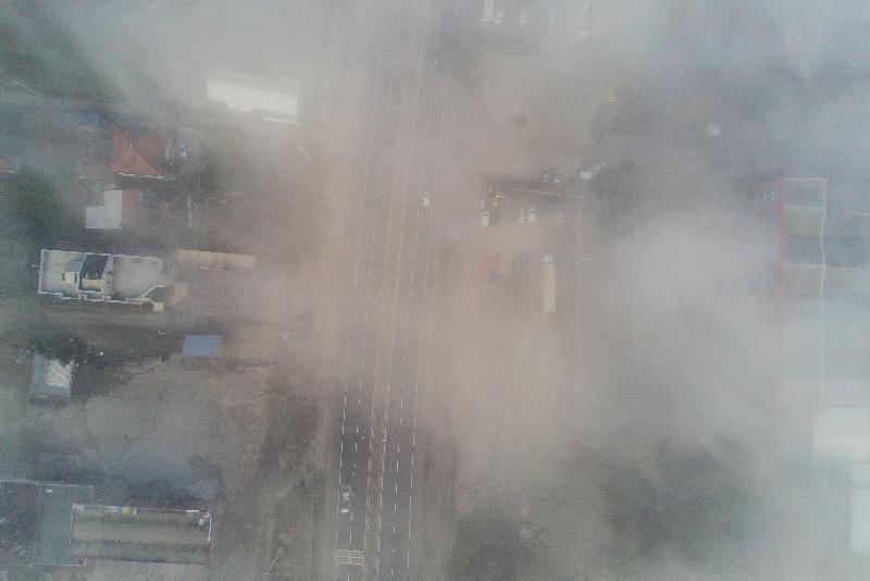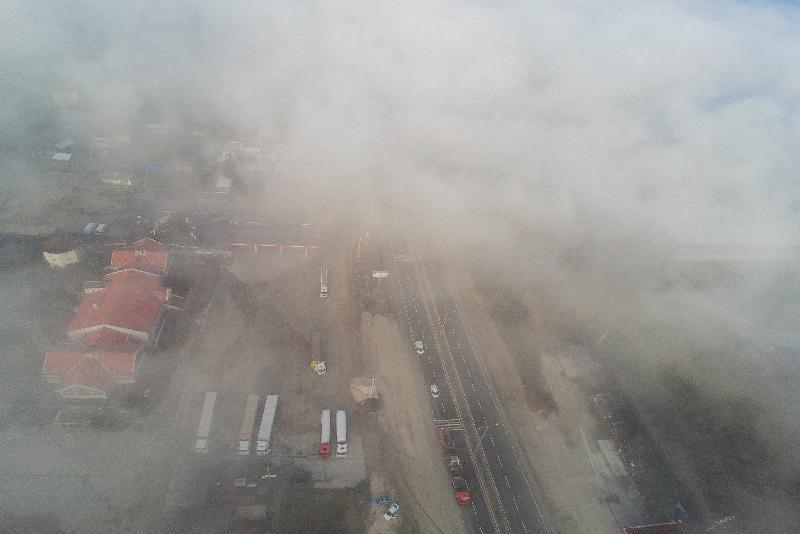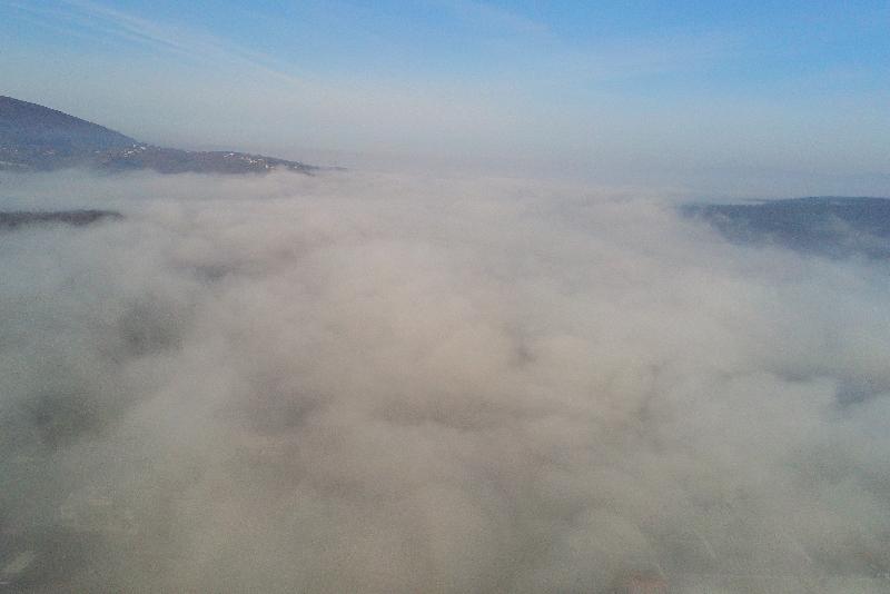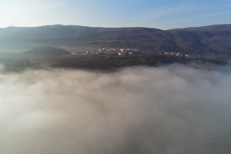 Dağların eteklerinde oluşan ve adeta sis denizini andıran görüntü, dronla havadan görüntülendi.