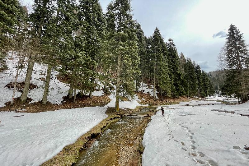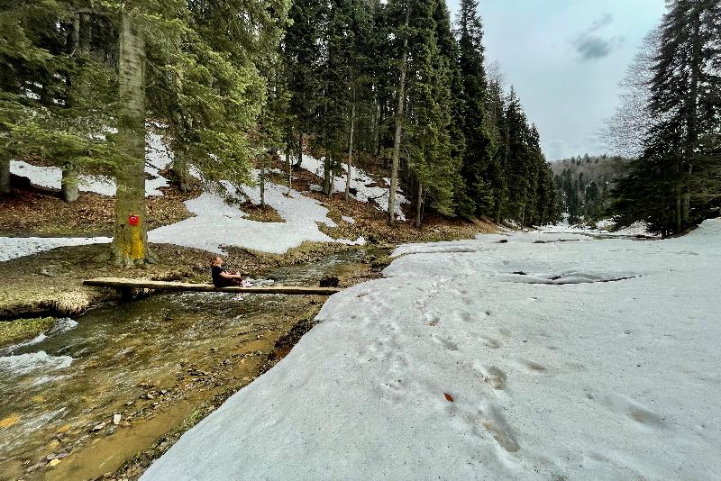 Aylardır bölgeye hakim olan beyaz örtünün düzlük alanlardan dağların eteklerine hakikat çekilmesiyle ortaya çıkan doğal hoşluk, adeta ilkbaharda yaşanan hareketliliği anlatıyor.