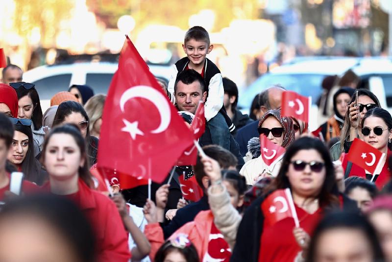 Trafiğe kapalı olan caddede vatandaşların da ellerindeki bayraklarla katıldığı yürüyüş, Anıtpark Meydanı'ndaki Atatürk Anıtı önünde İstiklal Marşı'nın okunması ile sona erdi.