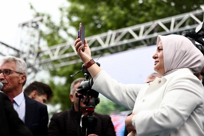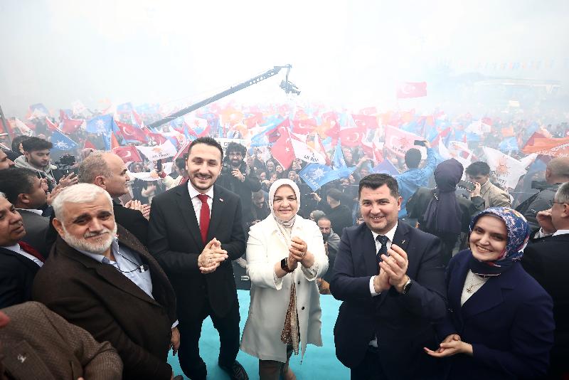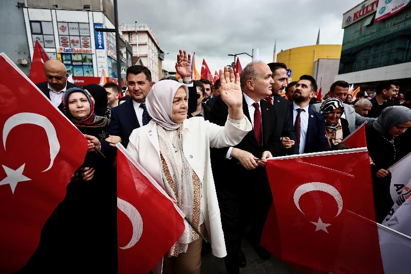 AK Parti Genel Merkez Kadın Kolları Başkanı ve milletvekili adayı Ayşe Keşir'in de yer aldığı kortej yürüyüşü sonrası meydanda hazırlanan alanda milletvekili adayları Ercan Öztürk ve Hakan Kuşçuoğlu tanıtıldı.