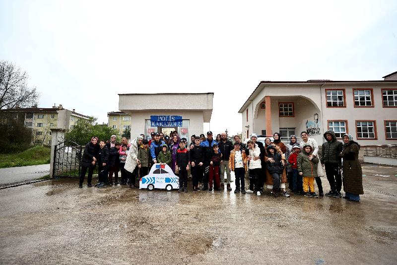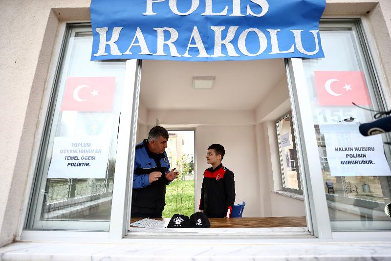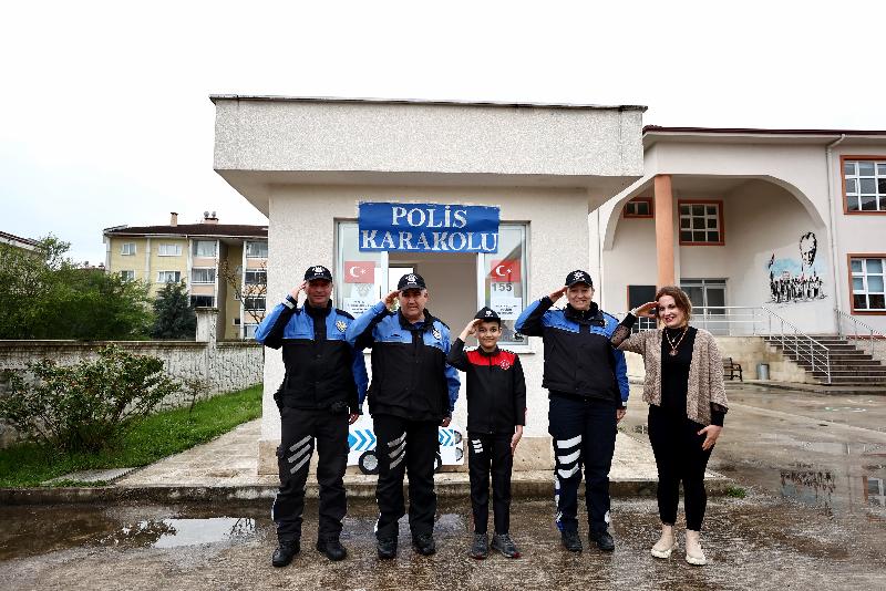 Öğretmenleri de okul girişinde bulunan güvenlik kulübesini temsili karakola çevirdi, Kaya'ya polis üniforması giydirdi.