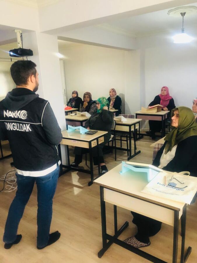 Zonguldak İl Emniyet Müdürlüğü 25.04.2023 tarihinde Şentepe Kur’an Kursunda Anne ve Anne adaylarına yönelik Narkorehber eğitimi düzenledi.