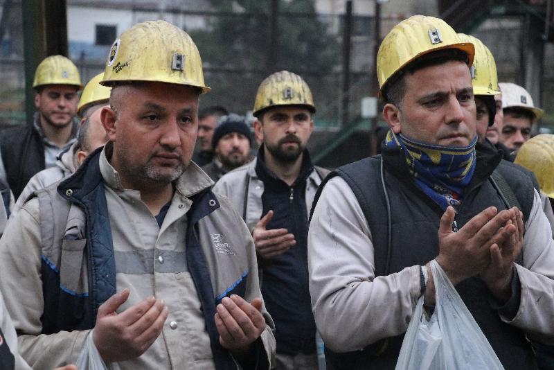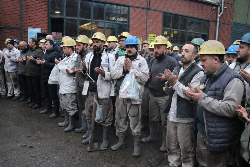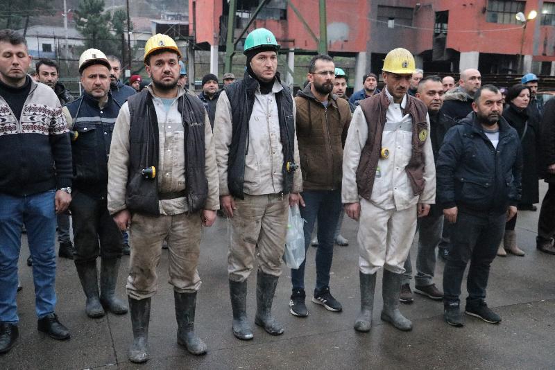 Kozlu kurumunda düzenlenen merasimde, faciada hayatını kaybeden personeller için hürmet duruşunda bulunuldu, Kur'an-ı Kerim okundu.