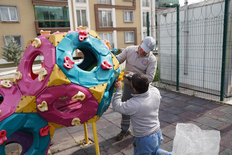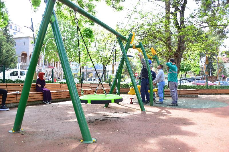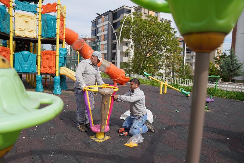 Belediye Park ve Bahçeler Müdürlüğü ekipleri, ilçede bulunan 45 parkta bozulan oyun gruplarını tamir edip bir kısmını ise yenileri ile değiştiriyor.