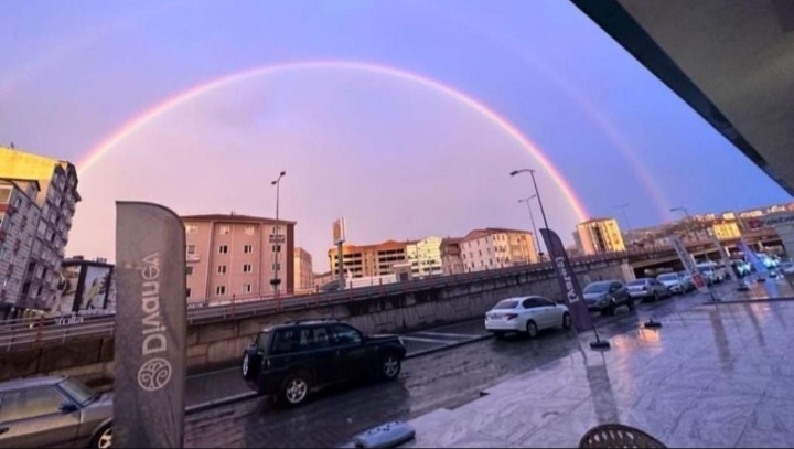 Ereğli’de akşam saatlerinde oluşan gökkuşağı görsel şölen oluşturdu. akşam saatlerinde başlayan sağanak yağış ve fırtınanın ardından gökkuşağı oluştu. Oluşan gökkuşağı ile birlikte görsel bir şölen meydana geldi. Yüksek kesimlerden gözüken gökkuşağını gören vatandaşlar cep telefonlarıyla fotoğraf çekti.
