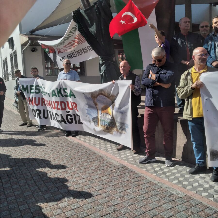 Birçok Sivil Toplum Kuruluşundan oluşan Kdz. Ereğli Ümmet Platformu’nun çağrısı ile Ali Molla Camisinde Cuma namazı sonrası bir araya gelen platform üyeleri ve vatandaşlar, saldırılarda hayatını kaybeden Filistinliler için gıyabi cenaze namazı kılarak dualar etti. İşgalci İsrail protesto edildi