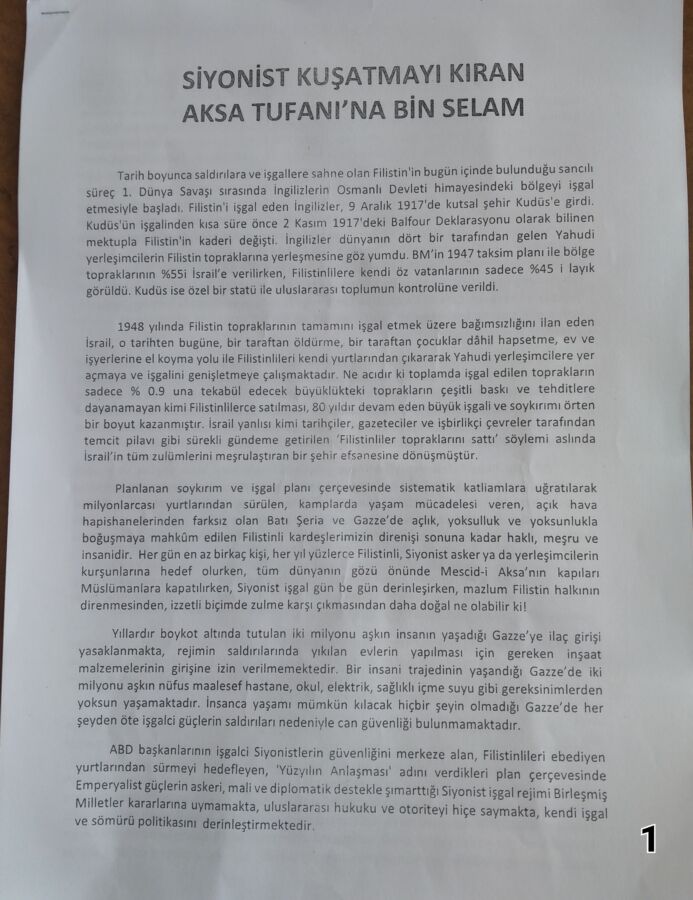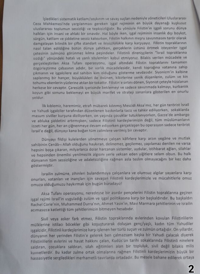 ve Filistin direnişinin Siyonist İsrail’e karşı başlattığı “Aksa Tufanı” operasyonuna destek verildi.
