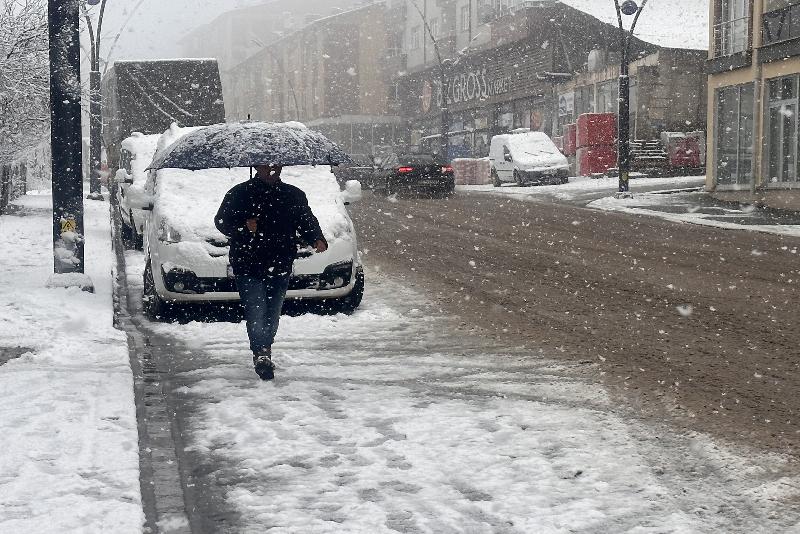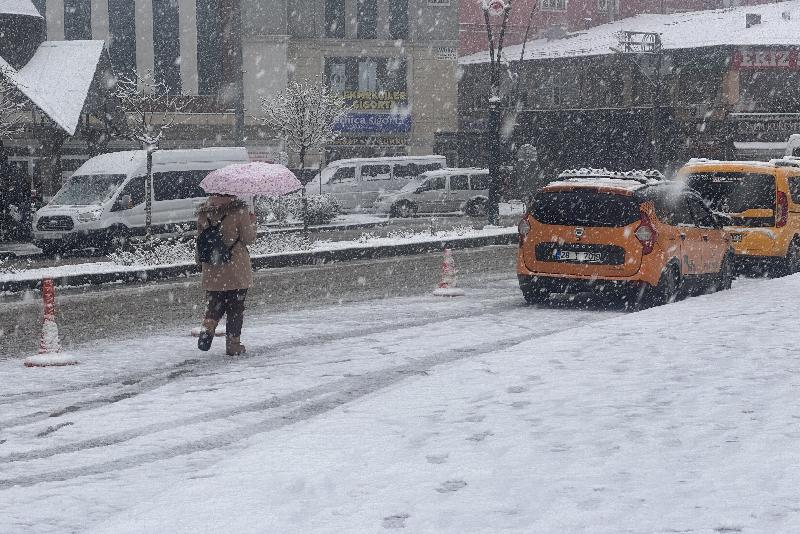Hayatı olumsuz etkileyen yağış sonucu Şebinkarahisar kent merkezinde kar kalınlığı yer yer 10 santimetreye ulaştı.