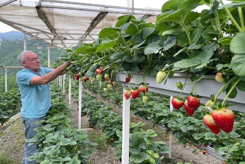 Espiye ilçesine bağlı Çam Mahallesi'nde çilek yetiştiren İbrahim Çönt, AA muhabirine, meyvenin üretimine hobi olarak başladığını söyledi.