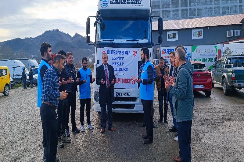 GİRESUN – 67aydinhaber – Giresun'un Espiye, Yağlıdere ve Keşap ilçelerinde Diyanet Vakfı şubeleri tarafından hazırlanan besin materyalleri Hatay'a gönderildi.