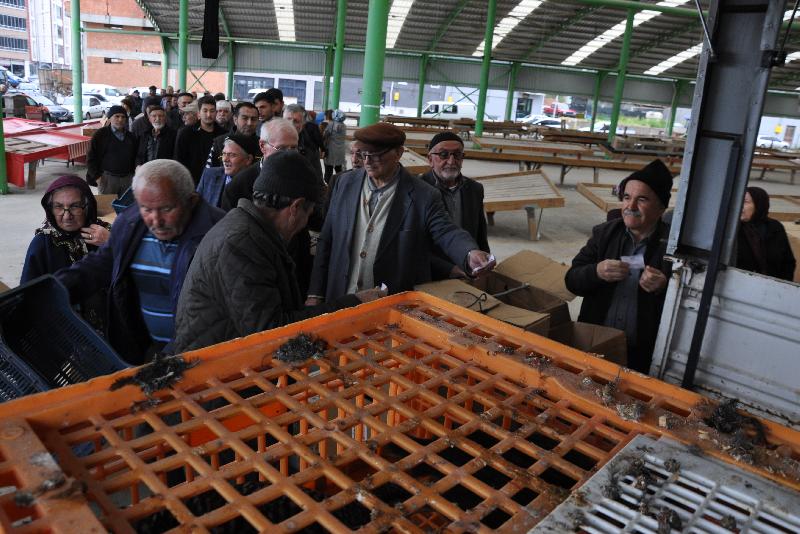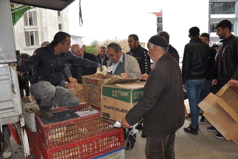 Halk pazarında yapılan dağıtımda çiftçiler, Tarım ve Orman Bakanlığı tarafından kontrolleri yapılmış aşılı 2 bin 50 kanatlı hayvanı teslim aldı.