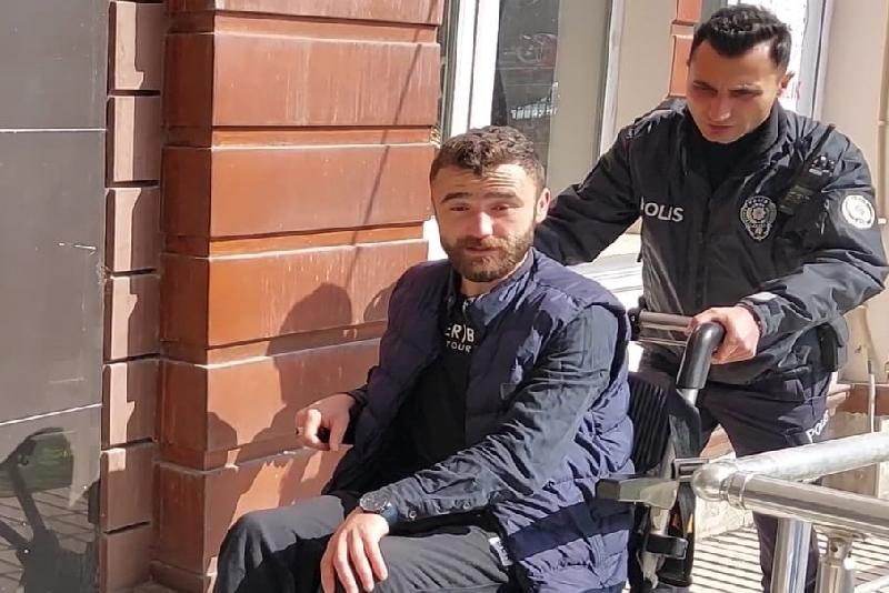 Polis aracıyla Bafra Adliyesi önüne getirilen kuşkulu, tekerlekli sandalyeyle adliye binasına götürüldü.