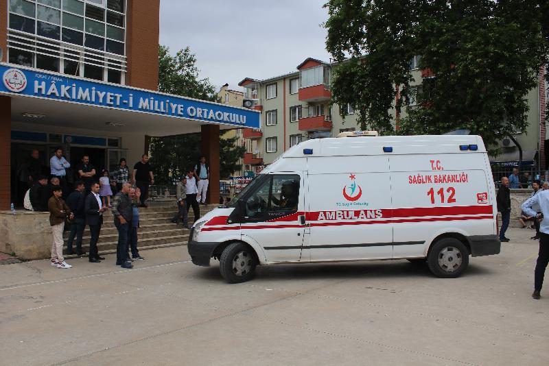 Hastaneden ambulansla alınan Üzüm, sağlık görevlilerinin eşliğinde Erbaa ilçesi Cumhuriyet Mahallesi'nde bulunan Hakimiyet-i Milliye Ortaokulu'na getirildi.