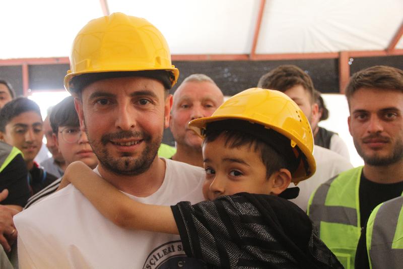 Maden işçileri, talepleri üzerine baret ve yeleklerini de çocuklara hediye etti.