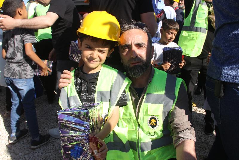 İşçiler burada çeşitli hediyeler verdikleri, çikolata ikram ettikleri çocuklarla vakit geçirdi.