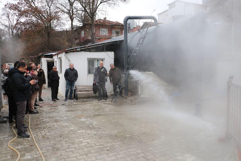 Jeotermal suyun ısıtmada kullanılarak tekrar dönüşünü sağlamayı hedefleyen proje kapsamında yapılan inceleme kapsamında üniversitelerde vazifeli öğretim üyeleri ile yabancı mühendislik ve teknoloji şirketi çalışanları, İmaret Mahallesi'nde jeotermal sondaj kuyuları ile projenin uygulanacağı pilot binada incelemede bulundu.