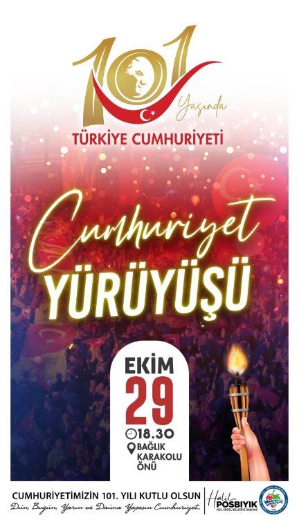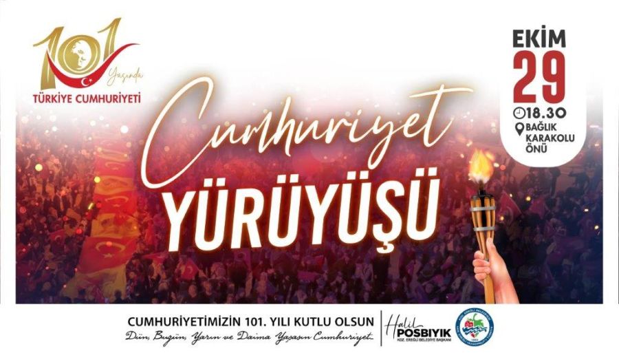 Cumhuriyetin 101. Kuruluş yıldönümünü coşkuyla kutlamaya hazırlanan Kdz. Ereğli Belediyesi, 29 Ekim Salı günü saat 18.30’da Bağlık Karakolu önünden Atatürk Anıtı’na kadar Cumhuriyet Yürüyüşü düzenleyecek. Belediye Başkanı Halil Posbıyık, yürüyüşe tüm Kdz. Ereğli halkını davet etti.