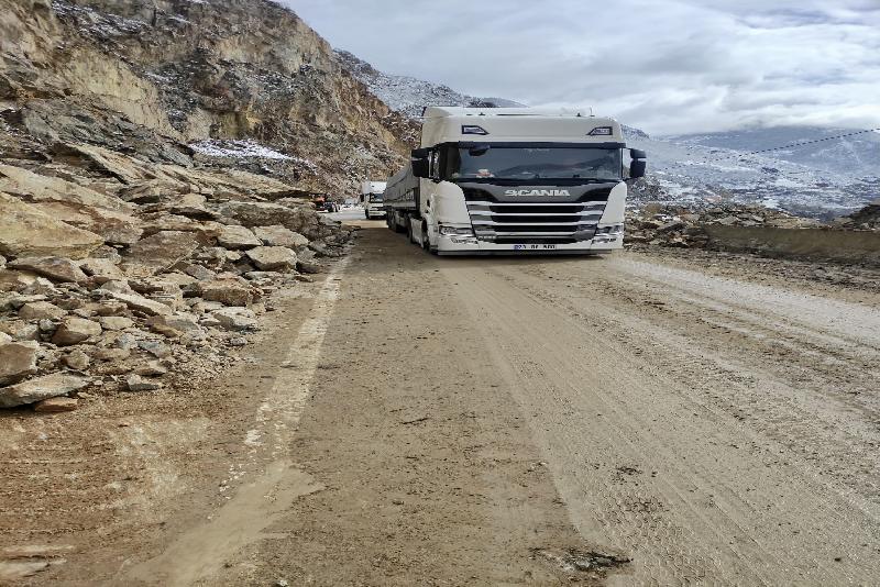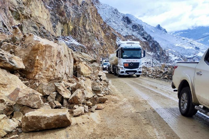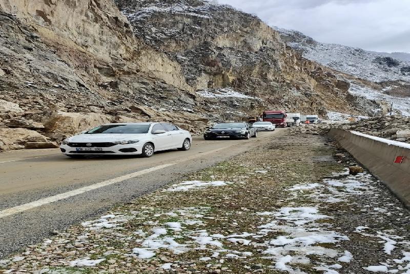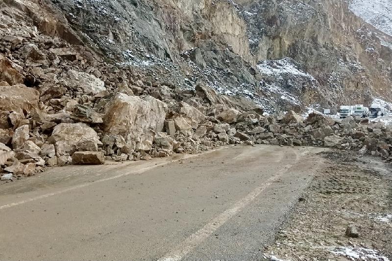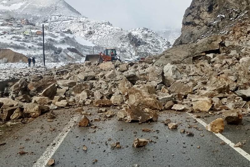 Yamaçtan düşen kaya kütleleri ve toprak yığını sebebiyle kara yolu ulaşıma kapandı.