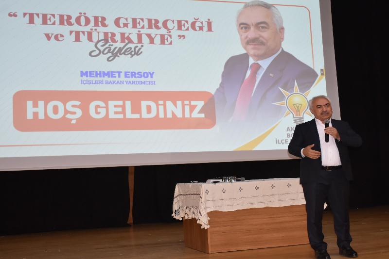 SİNOP – İçişleri Bakan Yardımcısı Mehmet Ersoy, Sinop'un Boyabat ilçesinde “Terör Gerçeği ve Türkiye” konulu söyleşiye katıldı.
