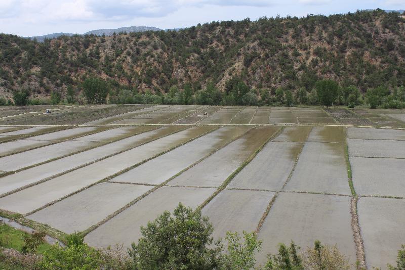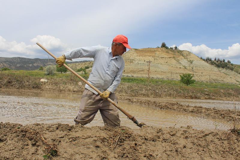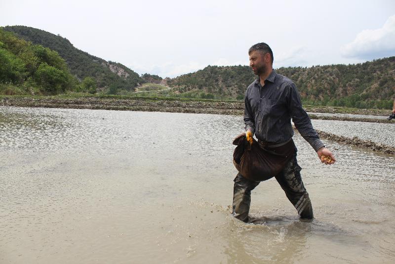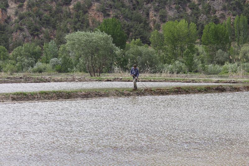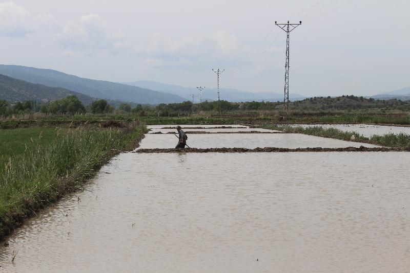 Nisan ayında başlayan hazırlıklardan sonra çeltik üretimi için tarlaları “tava” denilen bölümlere ayıran çiftçiler, daha sonra bu alanlara su veriyor.