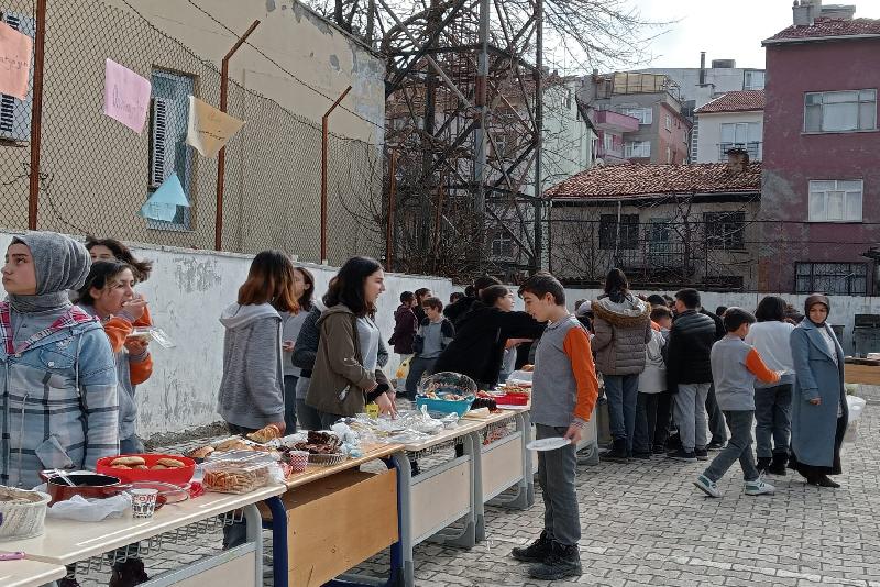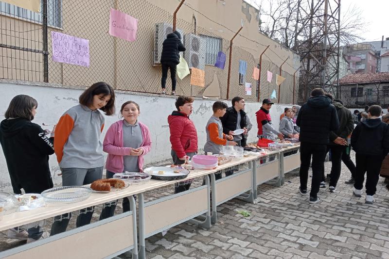 Öğrencilerin aileleriyle hazırladıkları besin eserleri, okul bahçesindeki kermes alanında davetlilerin ilgisine sunuldu.