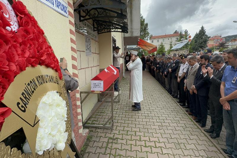 İlçeye getirilen Hatipoğlu'nun Türk bayrağına sarılı naaşı, tören mangasının omuzlarında Çarşı Camisi'ne taşındı.