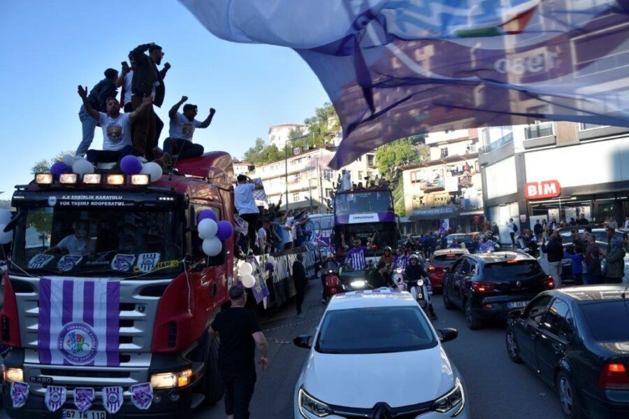 BAL Ligi’nde rekorları kırarak şampiyon olan ve 23 yıl aradan sonra 3. Lige çıkan Kdz. Ereğli Belediyespor takımı, kupasını aldıktan sonra şehir turu attı. Kdz. Ereğli halkı, şampiyon takıma ‘İşte Ereğli, İşte şampiyon’ tezahüratlarıyla destek verdi.