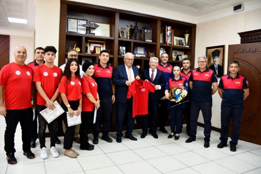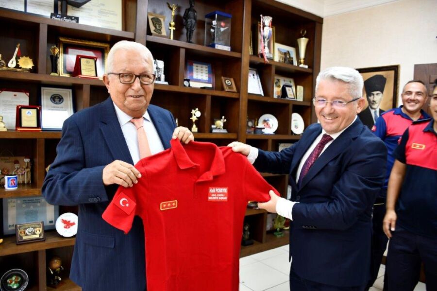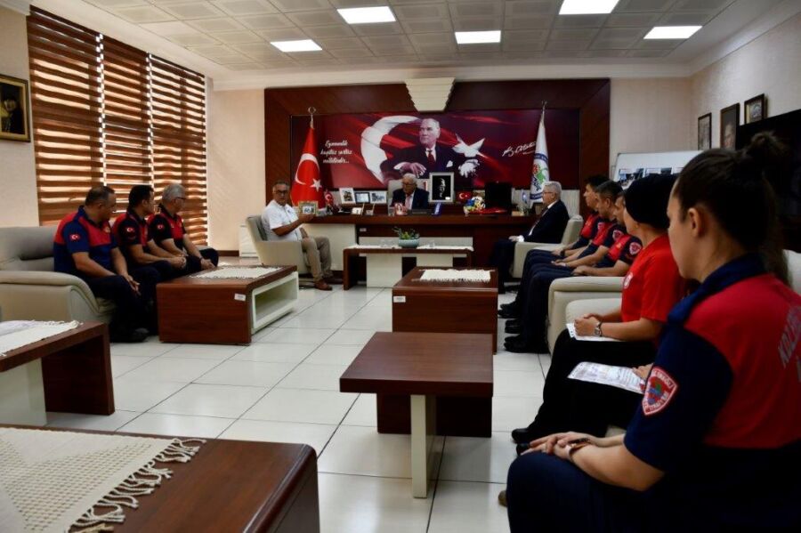 Başkan Yardımcısı Atilla Bulak ve İtfaiye Müdürü Muhammet Ali Ateş daha sonra itfaiye personeli ile Belediye Başkanı Halil Posbıyık’ı makamında ziyaret etti.