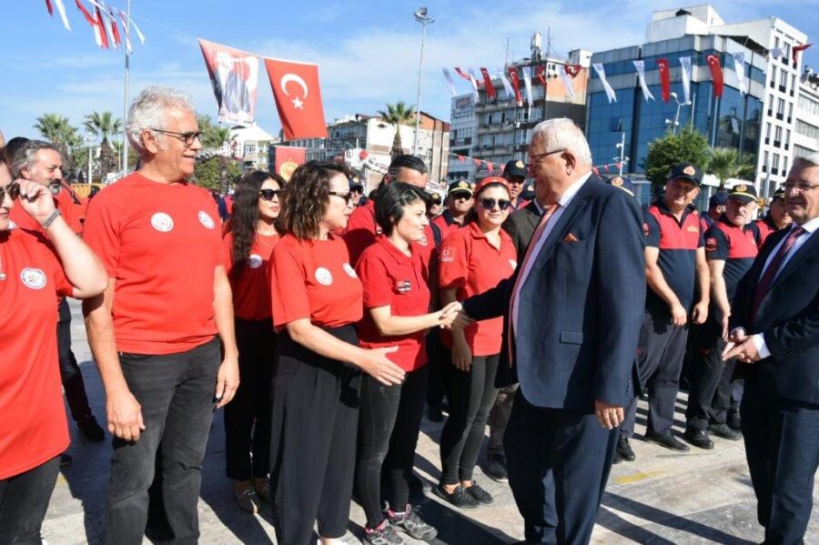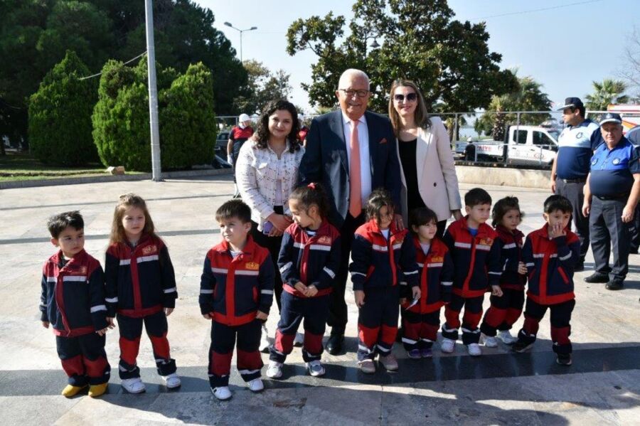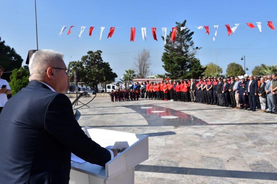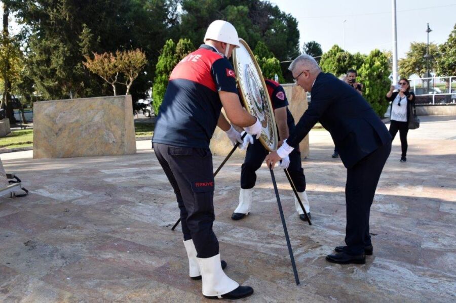 Atatürk Anıtı’nda düzenlenen törende İtfaiye Müdürü Muhammet Ali Ateş anıta çelenk sundu, saygı duruşunda bulunularak İstiklal Marşı okundu. Törene Belediye Başkanı Halil Posbıyık, belediye başkan yardımcıları, daire müdürleri, itfaiye mensupları, gönüllü itfaiyeciler ve diğer kurumlardan gelen temsilciler katıldı. Belediye kreşinin minikleri de itfaiyeci kıyafetleriyle törene renk kattılar.