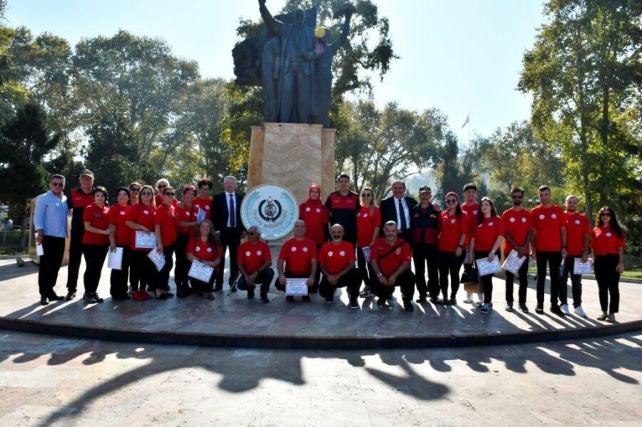 İlçemizde gönüllü itfaiyeciliği yaygınlaştırmak adına yaptığımız eğitimler ve çalışmalar sonucunda 475 olan sayımız 14. Grup gönüllü itfaiyecilerimizle birlikte 45 kişi daha artarak toplamda 520’ye ulaşmıştır. Bugün gönüllülerimizi mezun ediyor birazdan da kendilerine sertifika ve kimlik kartlarını teslim edeceğiz. Belgelerinin hayırlı olmasını ve afetsiz günlerde kullanmalarını diliyorum.