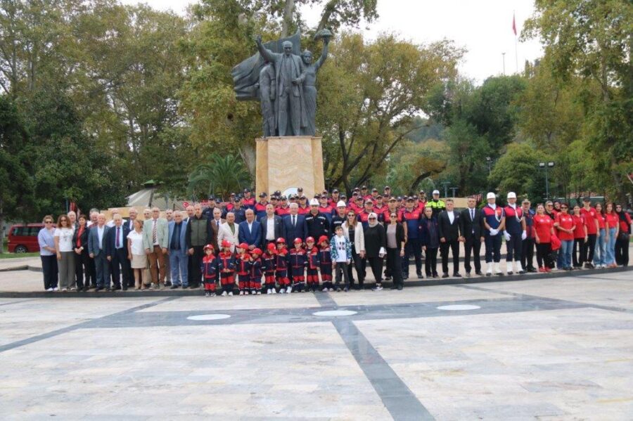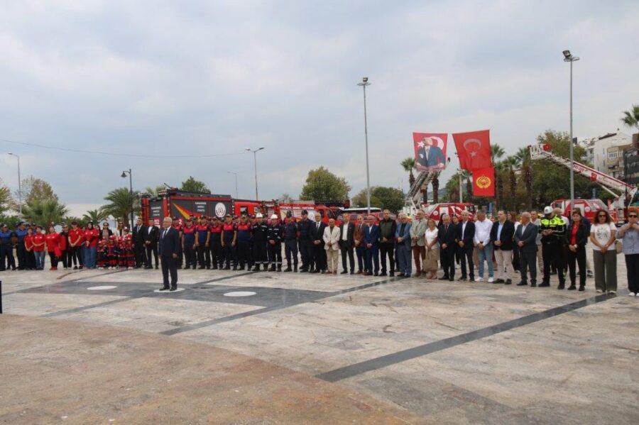 Atatürk Anıtı’nda düzenlenen törende İtfaiye Müdürü Muhammet Ali Ateş anıta çelenk sundu, saygı duruşunda bulunularak İstiklal Marşı okundu. Törene Belediye Başkanı vekili Çetin Yiğit, belediye başkan yardımcıları, belediye meclis üyeleri, siyasi parti temsilcileri, STK temsilcileri daire müdürleri, itfaiye mensupları, gönüllü itfaiyeciler, Erdemir İtfaiye yetkilileri ve diğer kurumlardan gelen temsilciler katıldı. Belediye kreşinin minikleri de itfaiyeci kıyafetleriyle törene renk kattılar.