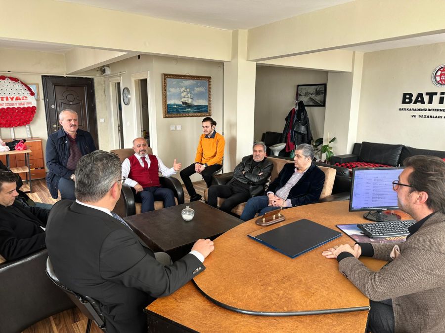 İYİ Parti Zonguldak Milletvekili aday adayı Sertan Yalçın, beraberinde işadamı Mehmet Çivici ve Avukat Musa Yurtseven ile birlikte BATİYAC’ı ziyaret ederek; gazetecilerle gündem konuları hakkında fikir alışverişinde bulundu.
