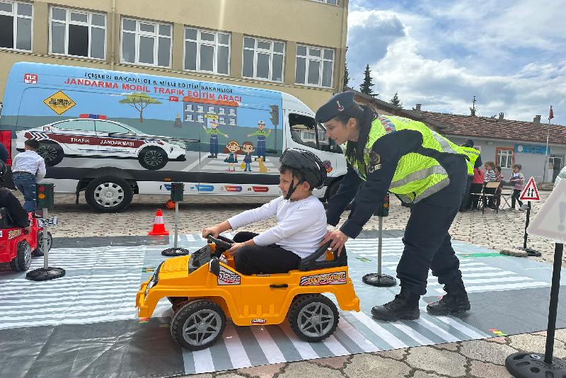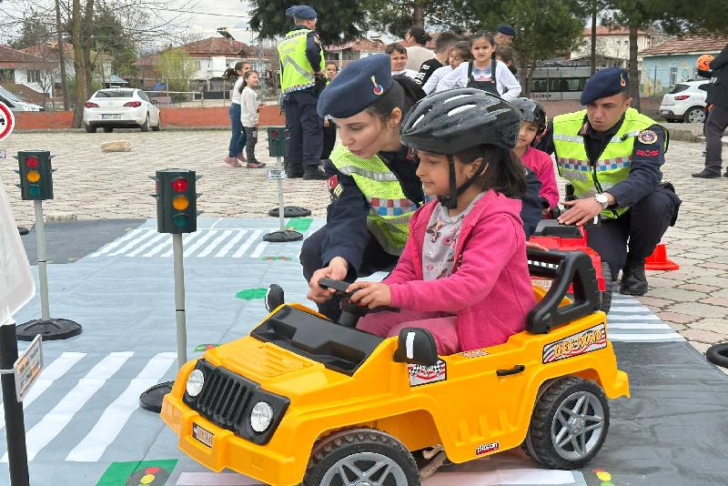 Mini araçlara bindirilen öğrenciler, jandarma gruplarının nezaretinde trafik levhaları ile donatılan alanda sürüş yaptı.