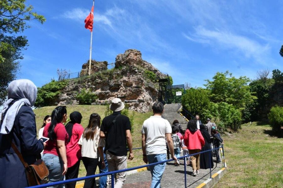Bu kapsamda şehrin cazibe merkezlerinden olan ve antik kentin simgesi haline gelen Kale Tepe’de tarihe yolculuk atölyesi gerçekleştirildi.