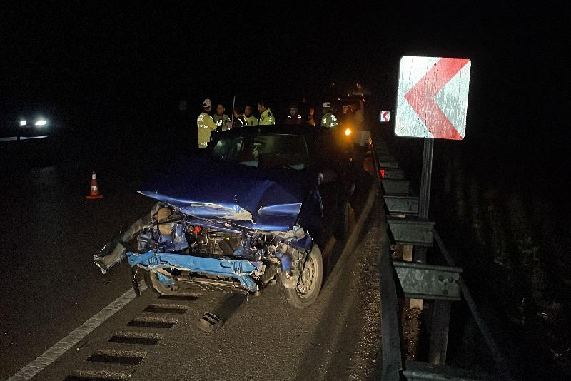 E.D. yönetimindeki 78 BT 568 plakalı araba, Karabük-Ankara kara yolu Burunsuz köyü yakınlarında yağmur nedeniyle kayganlaşan yolda refüjdeki bariyerlere çarptı.