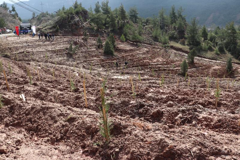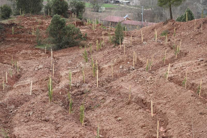 Karabük Orman İşletme Müdürlüğünce Ovacık yolundaki Cemaller köyü Yukarıkızılcaören mevkisinde 21 dekarlık “Deprem Şehitleri Ormanı” alanına dut, ceviz, badem, mavi servi, sedir, ıhlamur, kiraz, çınar, kızılcık ve alıç olmak üzere toplam 1100 fidan dikildi.