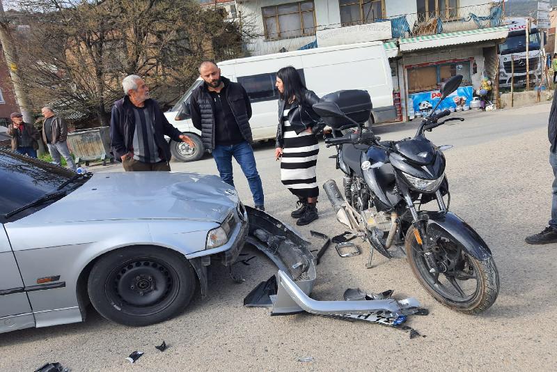 Yeni Mahalle Melise Caddesi'nde plakası ve şoförlerinin ismi öğrenilemeyen araba ile motosiklet çarpıştı.